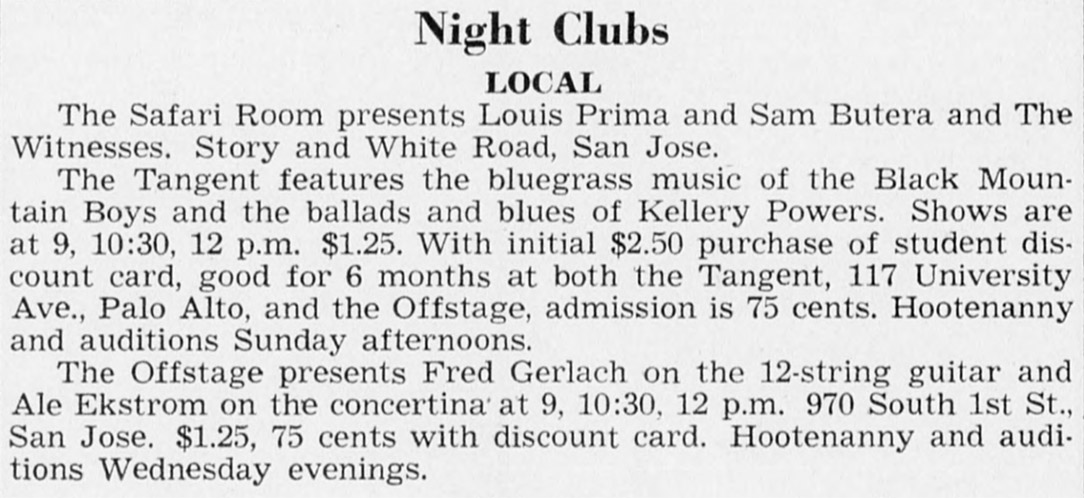 Jerry Garcia, The Top Of The Tangent, 117 University Avenue, Palo Alto, CA 1963-64 (Lost And Found)