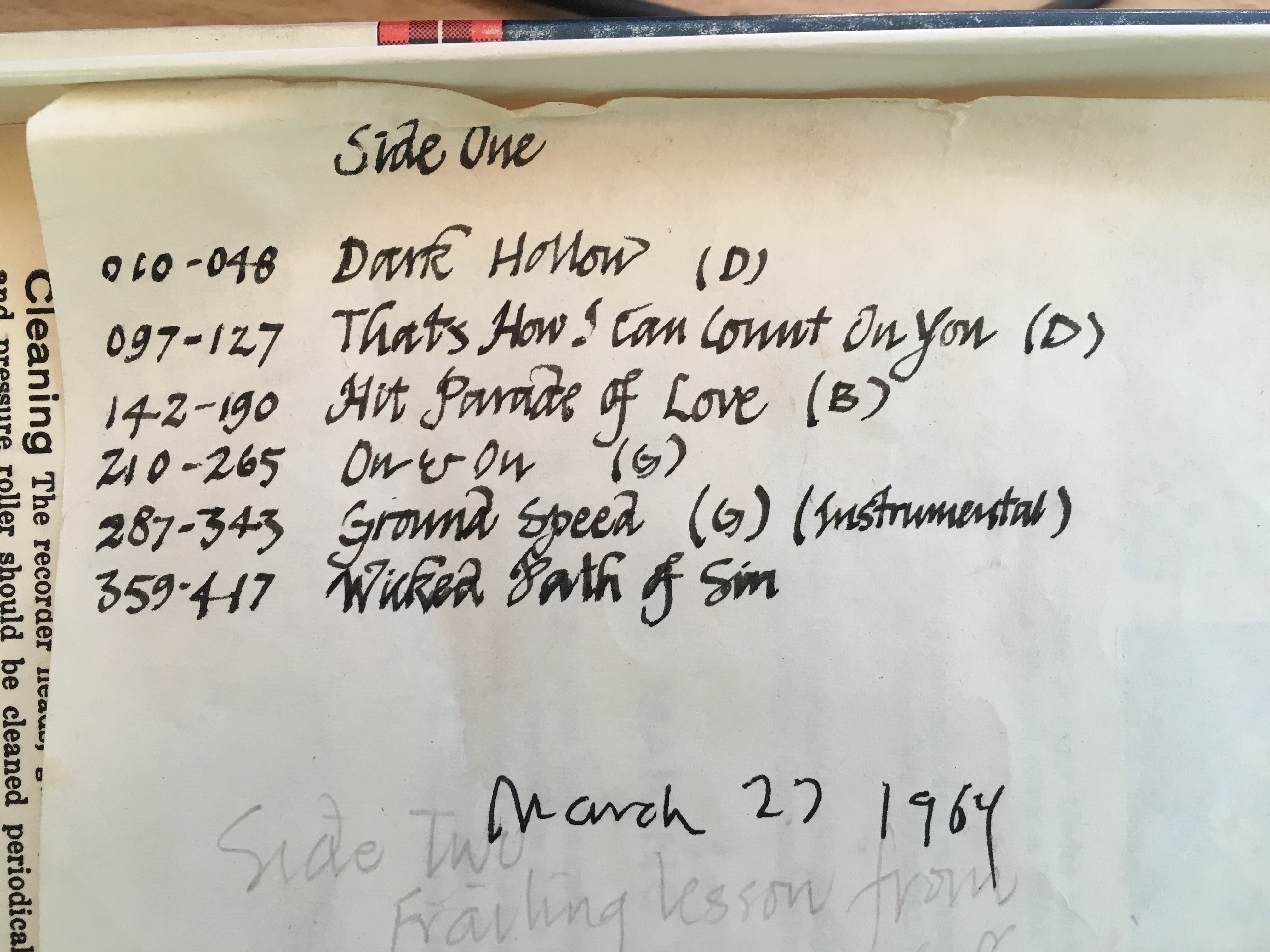There is a partial tune remaining from a previous recording on the reel of Garcia singing "Long Black Veil."