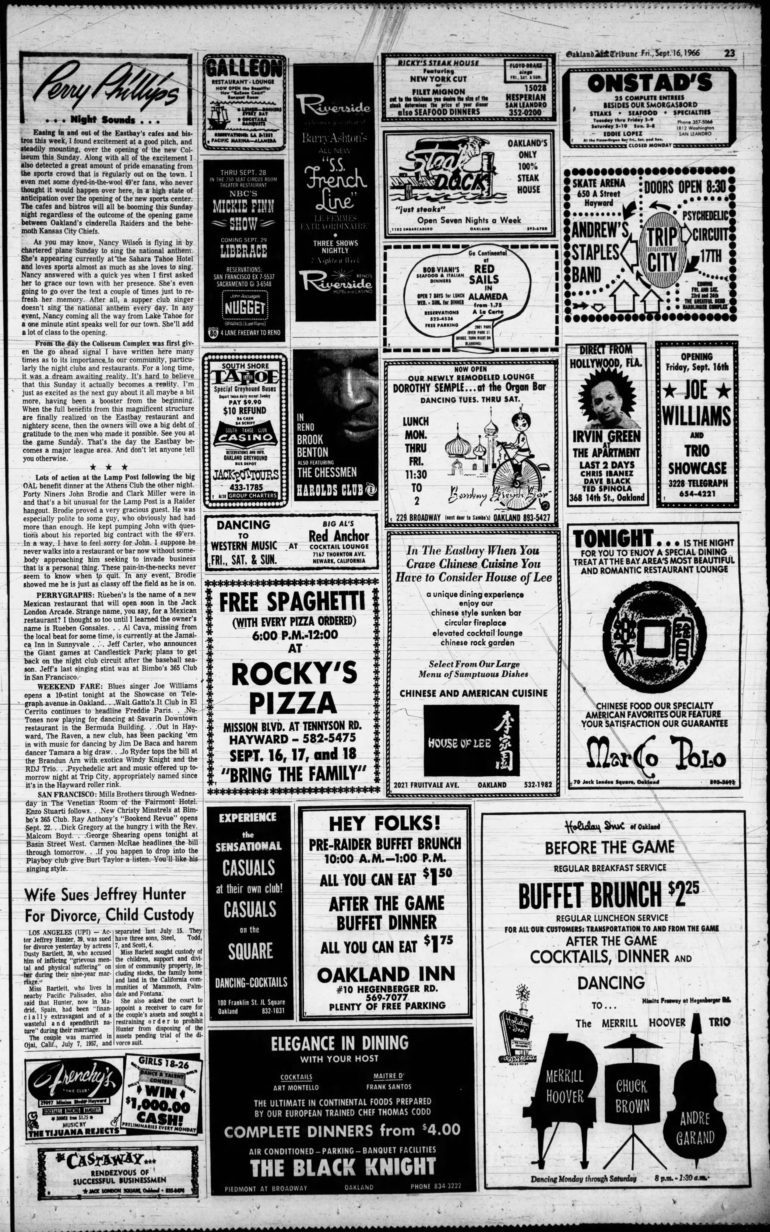 All we have on these shows is this small ad from the Oakland Tribune, Sept. 16 1966.
