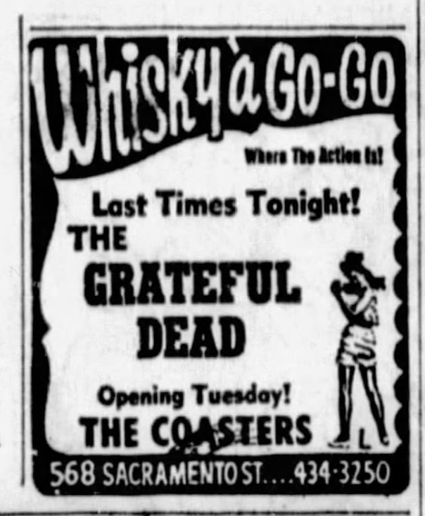 March 10-15, 1967, Whisky A-Go-Go, San Francisco, CA: The Grateful Dead (canceled)