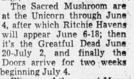 listing for GD at the Unicorn from June 20 - July 2, 1967.