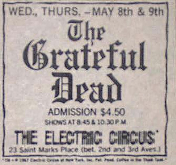 May 7-9, 1968, The Electric Circus, 23 St. Mark's Place, New York, NY: The Grateful Dead