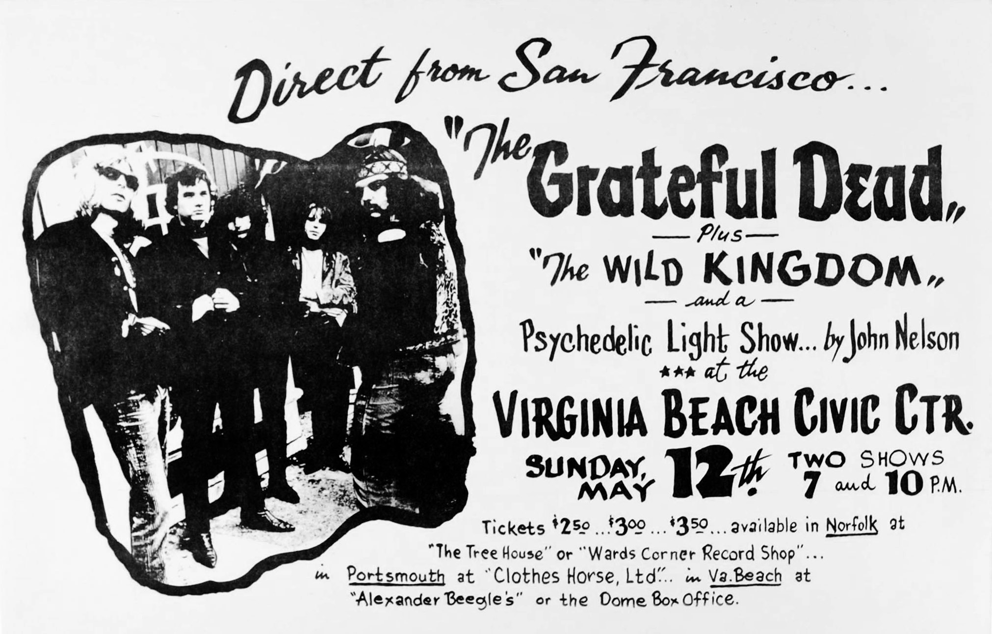mandolincafe: comment from Michael Johnstone, who was a guitar player for opening act The Wild Kingdom: "Speaking of the Dead, my band opened for them in the summer of 68 at the Virginia Beach Dome and Jerry asked me to jam with them at sound check which I attempted to do but something I'd ingested earlier in the day was kicking in and causing my mind to wander so Jerry yelled across the stage for me to unplug and sit down. I was crushed. That story followed me all the way to California and across 4 decades and in the minds of some, I'm still "The guy who was too high to jam with the Dead...."