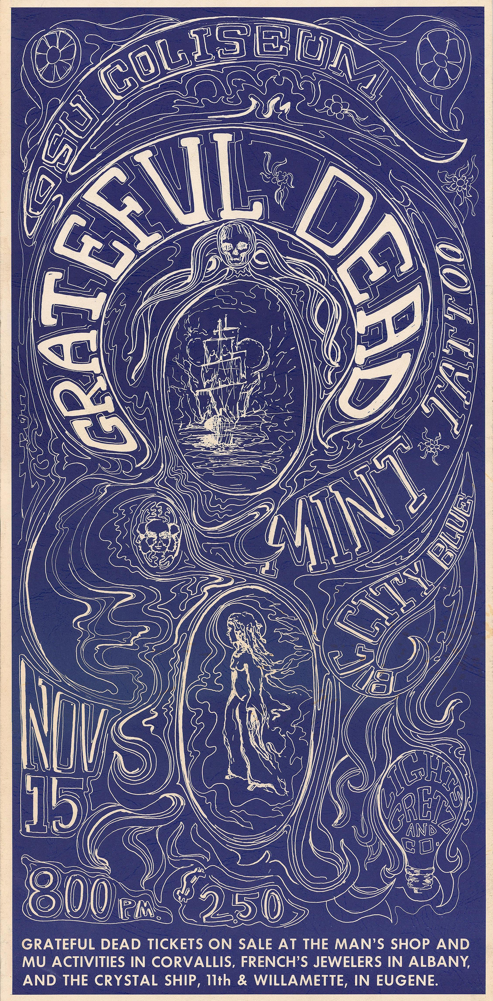 deadlists.net entry for 11/15/68 "Marshall Adams, guitar player for Big City Blue had this to say: 'Big City Blue came together for the Grateful Dead Concert at OSU Gill Coliseum in Fall Term 1968. We were to open and Mint Tattoo was to also be featured. We had one set of material with Jimmy Hibbs doing most of the vocals and rhythm guitar, Jim Knight on Bass, Ron Leach on drums, and Marshall Adams on lead guitar and folk flute. Well we opened and it went quite well. 35 minutes later we went back on and did our set again. Seems that Mint Tattoo was busy out in the parking lot doing whatever bands would do in a parking lot'"