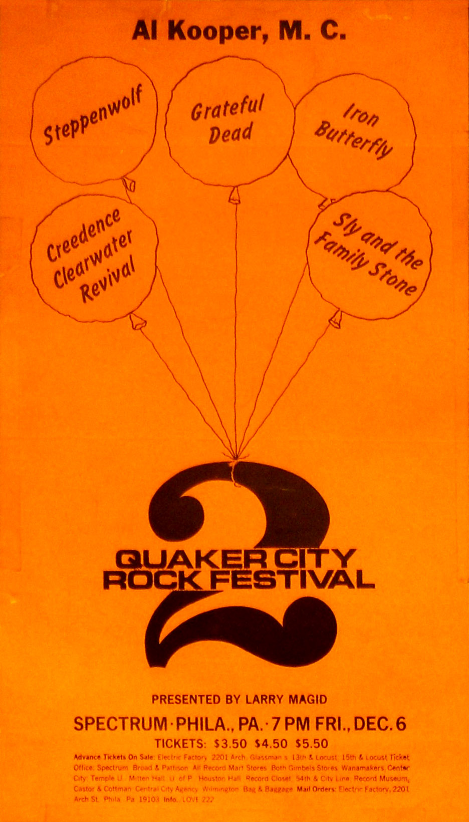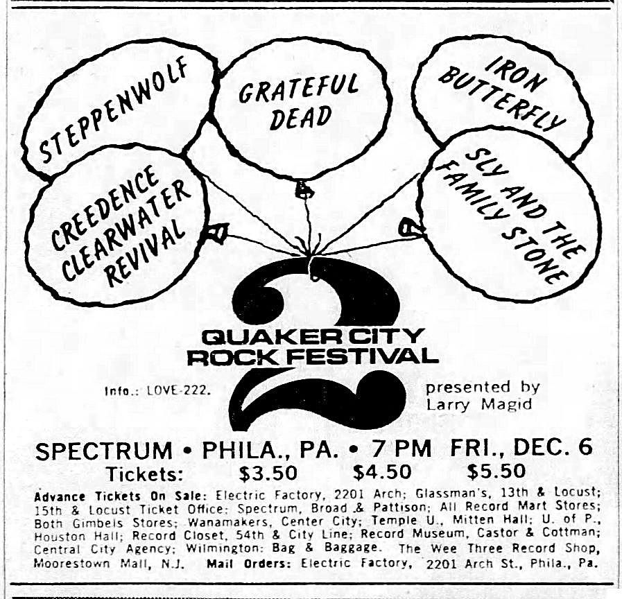 2nd Quaker City Rock Festival; Creedence Clearwater Revival was on the bill but cancelled; Al Kooper served as emcee for the event and sat in with local band American Dream, who filled in for Creedence.