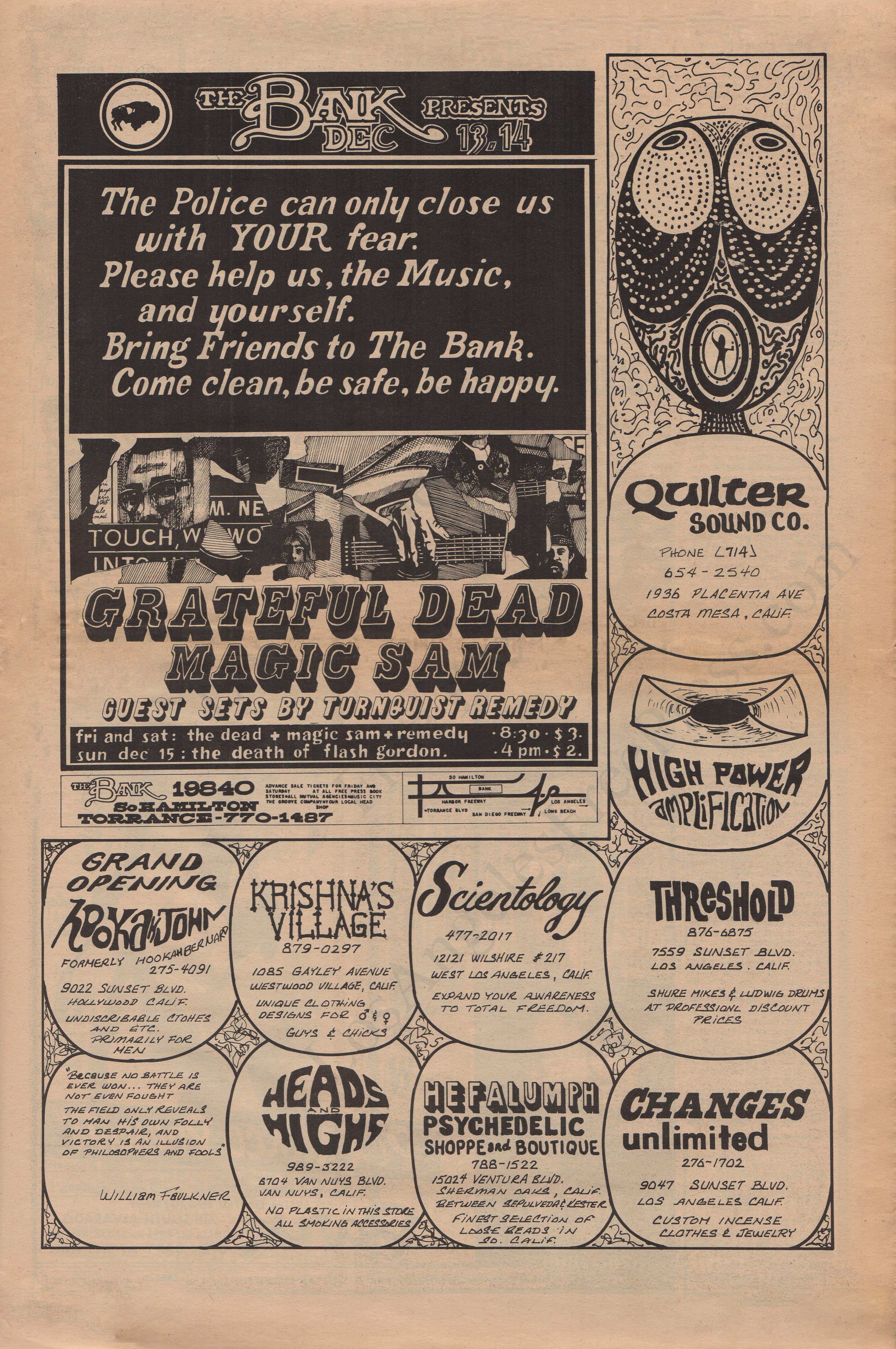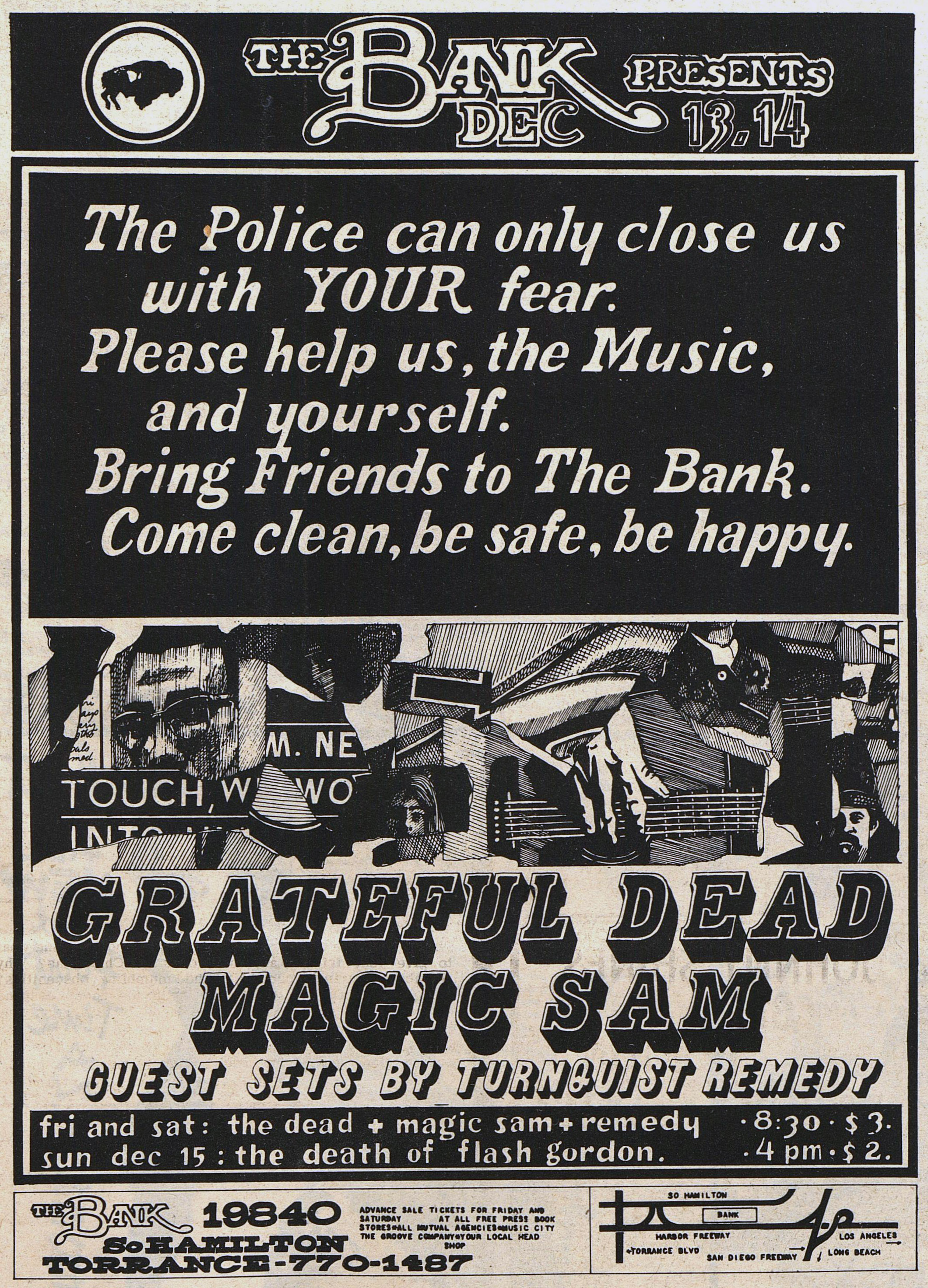 Lovelight comes from audience recollection shared by LIA. And more color from an attendee quoted by LIA, "I was at that concert, at least the Friday night one. I do remember somebody from the group coming to the front of stage right before the Dead started. He had a paper bag and was pulling out handfuls of white tabs of acid and throwing them to the audience who were sitting on the floor."