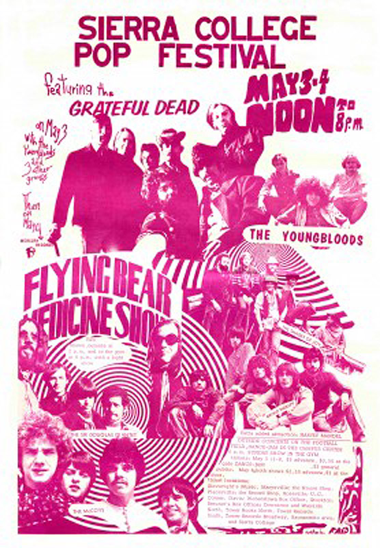 As per Corry Arnold citing the local Placer Herald, "the original posters pitched a two-day festival (May 3-4) with the Dead, the Youngbloods and a bunch of acts on Mercury Records. It was reduced to a one-day event, daytime on the football field and night-time at the gym. The Dead had to have played outdoors in the afternoon (they had Winterland that night), not clear whether the Youngbloods played the football field or the gym, I think the former."