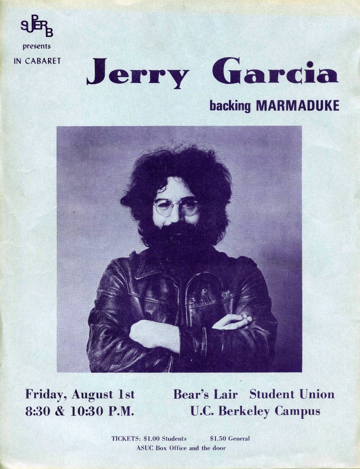listings: Good Times, July 31, 1969, p. 24 ("Jerry Garcia, Marmaduke, Others") |San Francisco Chronicle, August 1, 1969, p. 42 |San Francisco Examiner, August 1, 1969, p. 27 |Berkeley Barb, August 1-7, 1969, p. 20