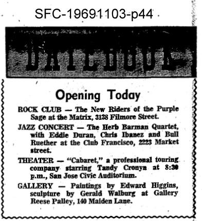 Grateful Dead/Jerry Garcia Tour Itinerary November 1969