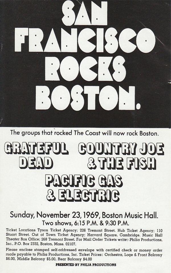 November 23, 1969, Boston Music Hall, Boston, MA: Grateful Dead/Country Joe and The Fish/Pacific Gas & Electric (canceled?)