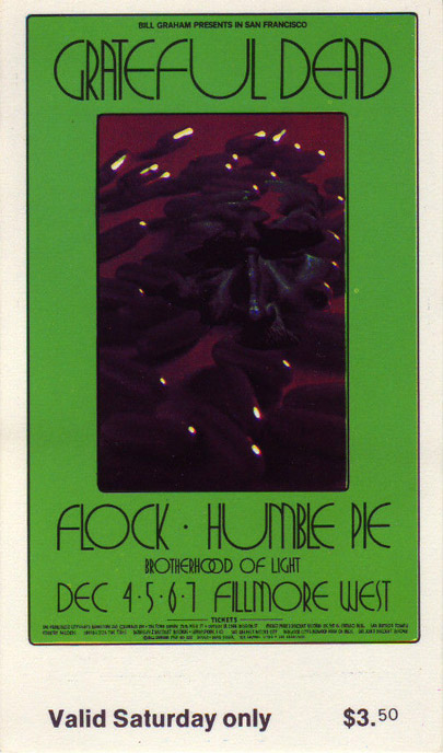 Note from the Archives: Earlier in the week, Jon McIntire penned a one-page proposal to Graham's people for an after-party. "Request: that in the event of a free concert, the Grateful Dead and the Rolling Stones hereby request permission to use the premises of Fillmore West Saturday nite for a private by invite only party -- the most memorable evening in San Francisco ballroom history!!" The evening of course ended up one of the most consequential evenings in San Francisco counterculture history, bigger still than a Dead-Stones private party.