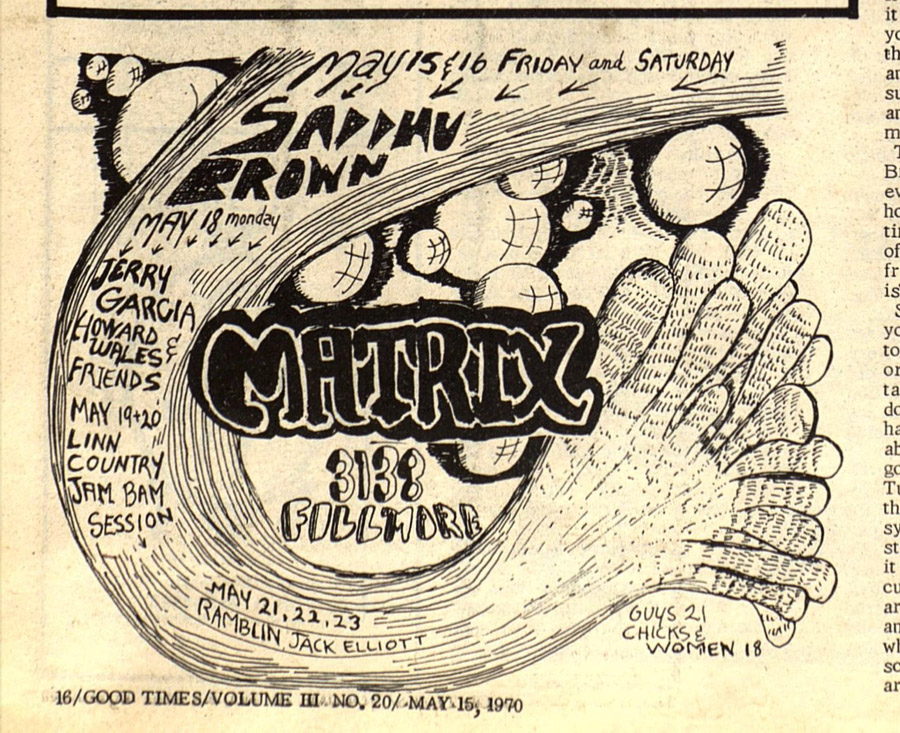 listings: Good Times v.3 n.20 (May 15, 1970), p. 24; Berkeley Tribe, v2 n19 (issue #45), p. 24 |San Francisco Chronicle, May 18, 1970, p. 42, all billing "Jerry Garcia, Howard Wales & Friends"