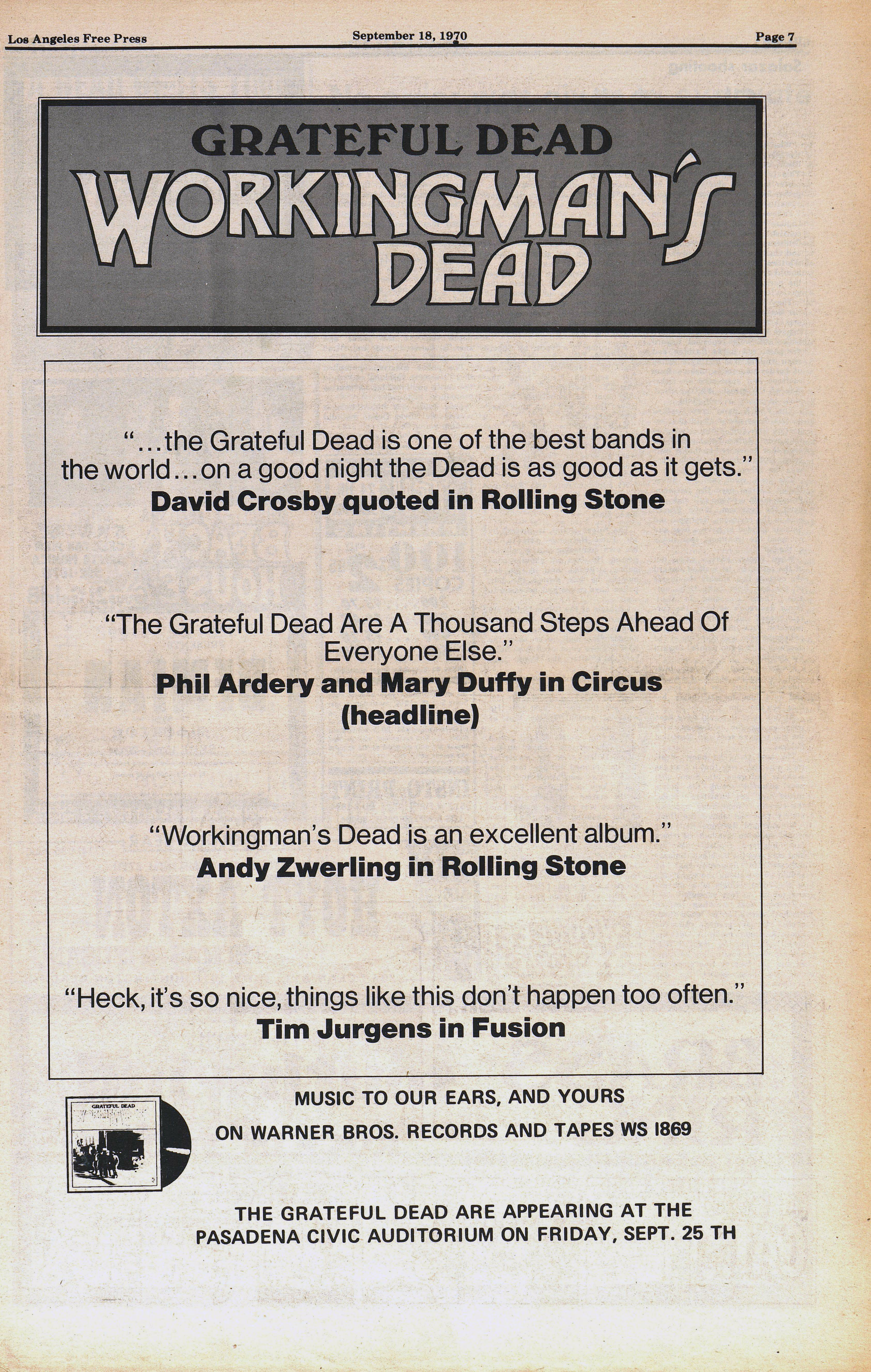 ad: Los Angeles Free Press, September 11, 1970, p. 14;