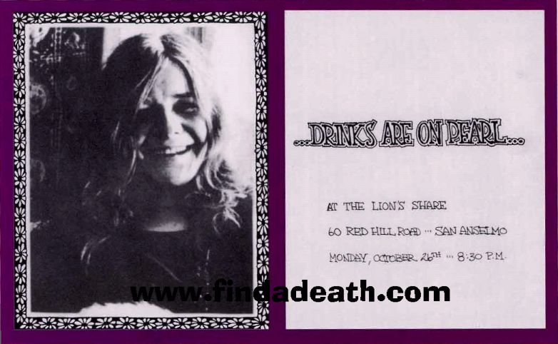 Janis's wake got an AP story dated 11/3/70, with no precise date given for the event, but Mastropolo 2015 puts it on this night. We therefore presume that the JGMS Matrix gig listed in the papers was canceled.