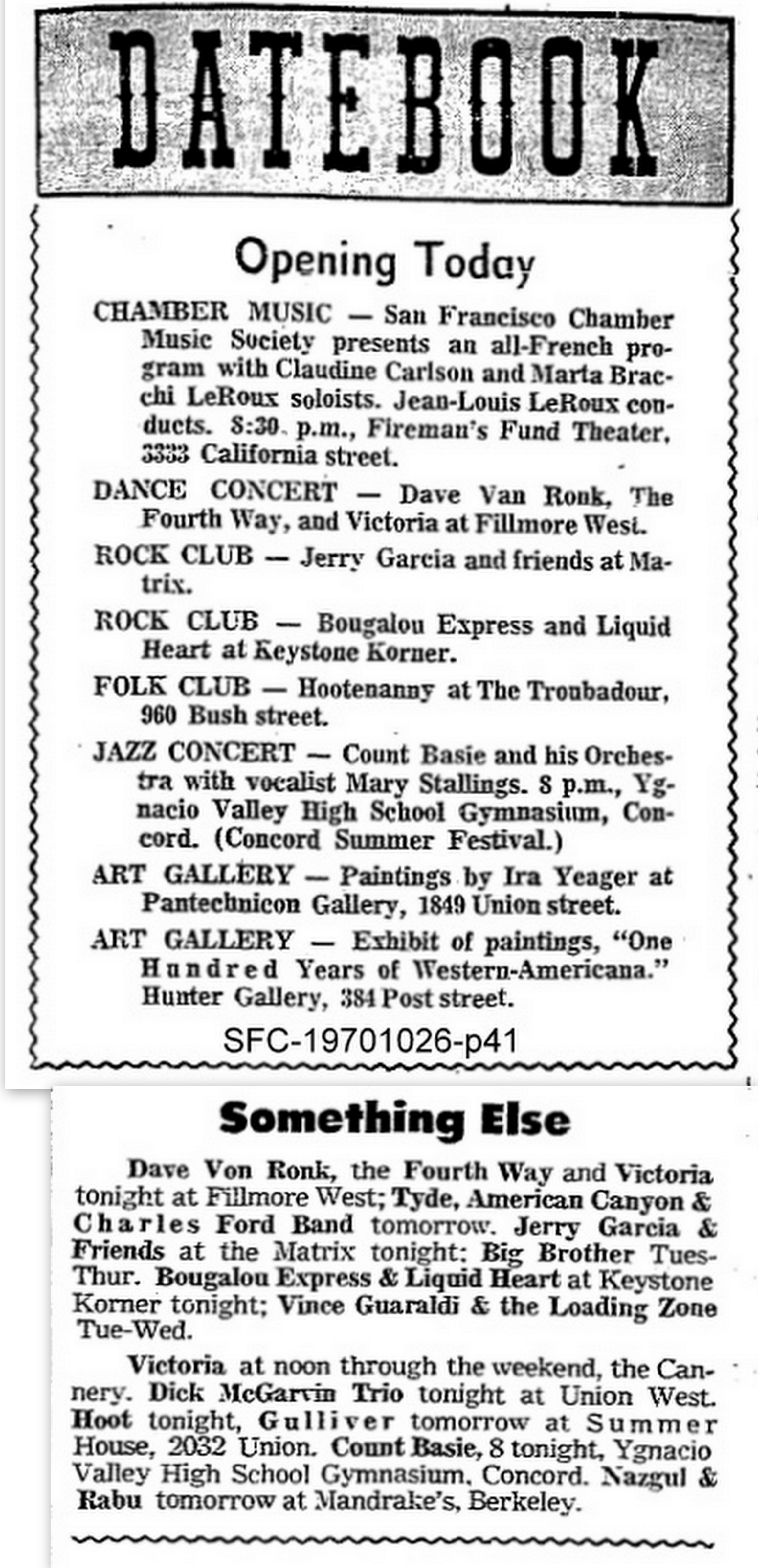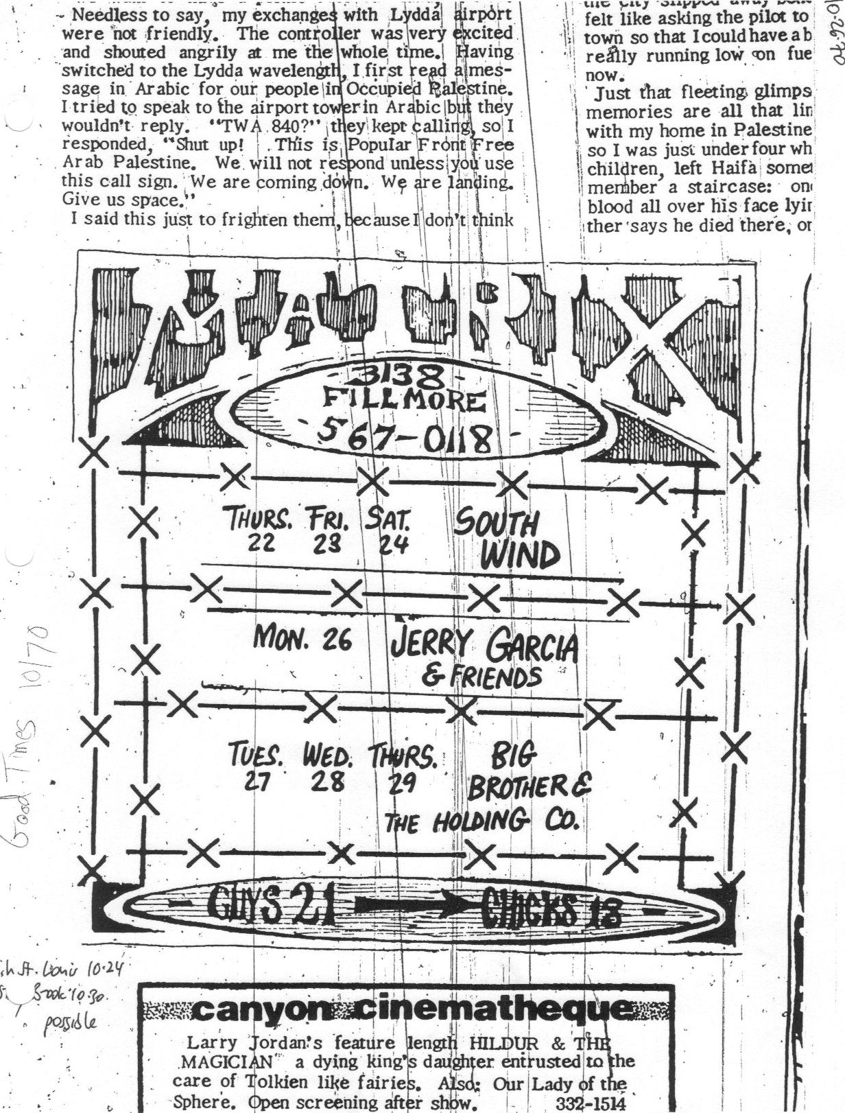 Billed as "Jerry Garcia and Friends". We presume no Jerry, given that Janis's wake is said to have happened