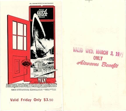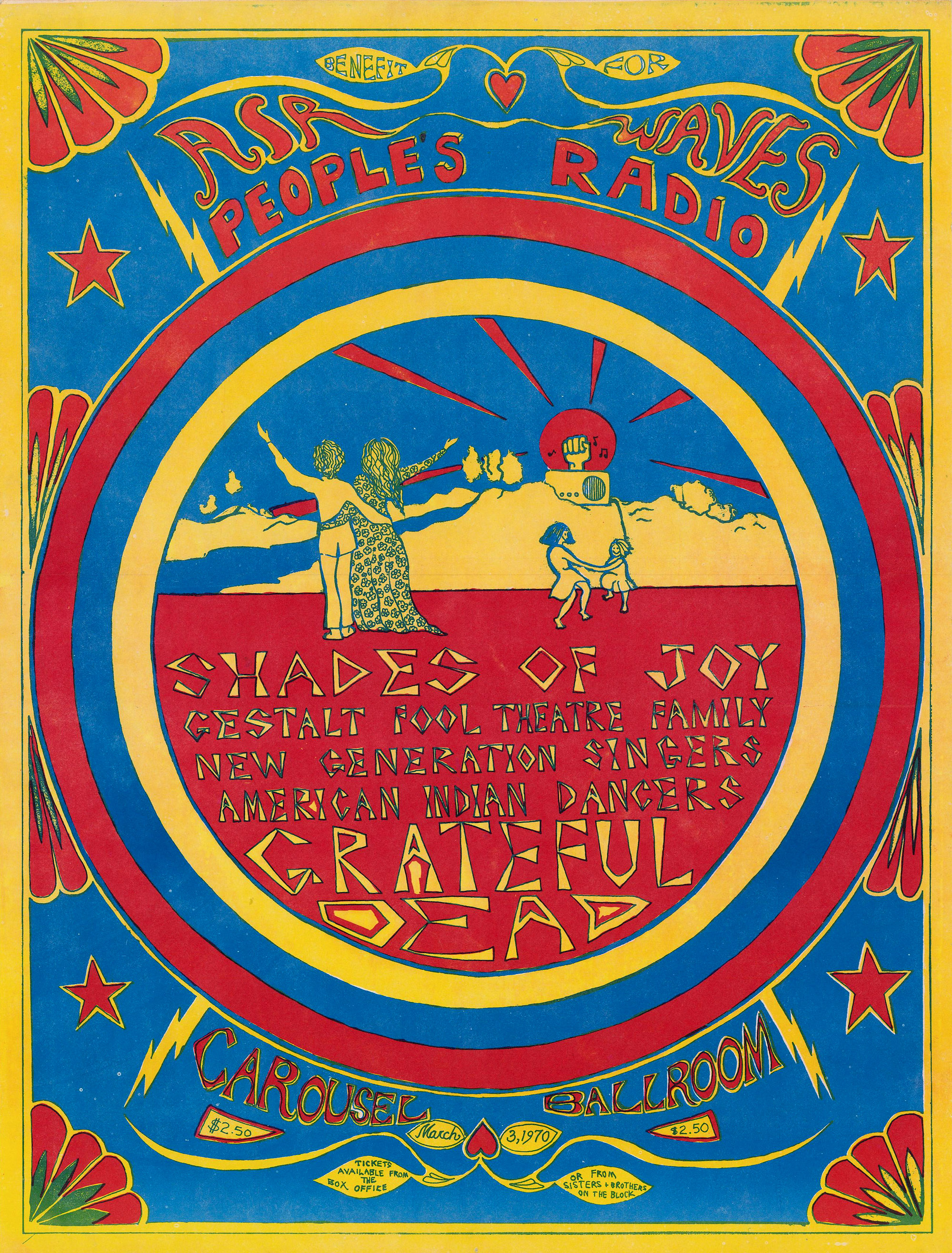 At the building then known as Fillmore West, but not promoted by Bill Graham and advertised as Carousel Ballroom, so we use that name here. Shades of Joy with Martin Fierro. Sellout, made $7k for the community radio beneficiaries. Great party. Hot Tuna appeared at the last minute. Dead played a 2 1/2 hour set ending at 3:30 am.