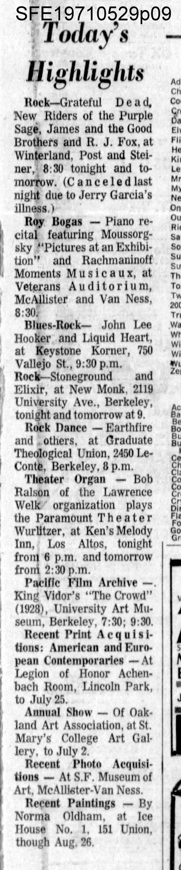 mention: "Bay Sounds," Oakland Tribune, May 26, 1971, p. 25