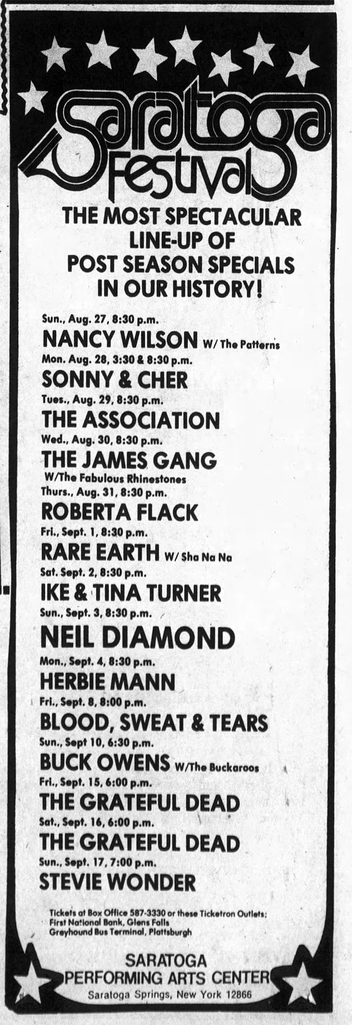 cxl: "2 Grateful Dead Concerts Canceled on Security Issue," New York Times, August 31, 1972, p. 27;