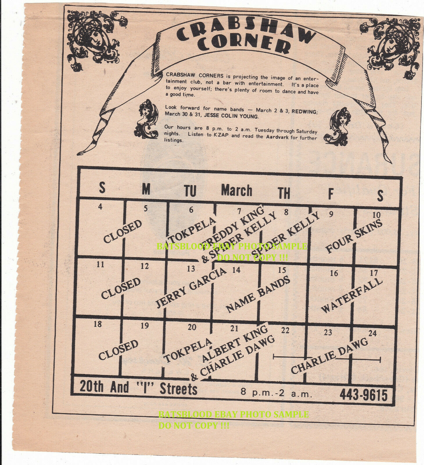 "Jerry Garcia" listed on venue calendar for 3/13, but Garcia is known to have played Berkeley this night.