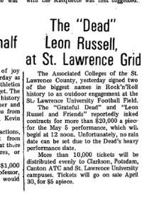 announce: "The 'Dead', Leon Russell at St. Lawrence Grid,"