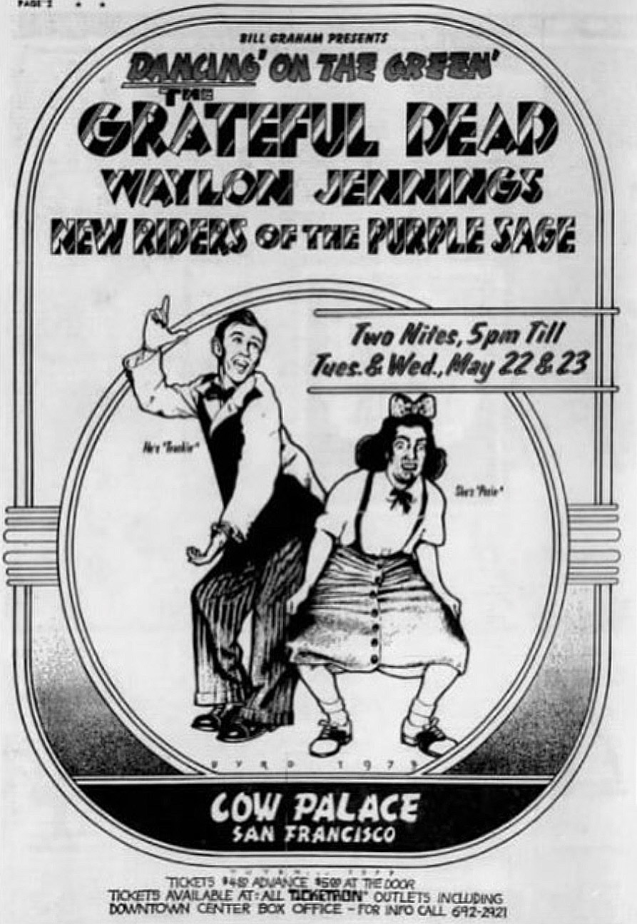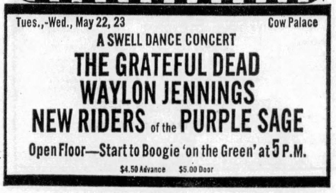 cxl. KG column of 5/4/73 says these will be May 21-22, with the NRPS and Willie Nelson. Replaced with single show at Kezar 5/26.