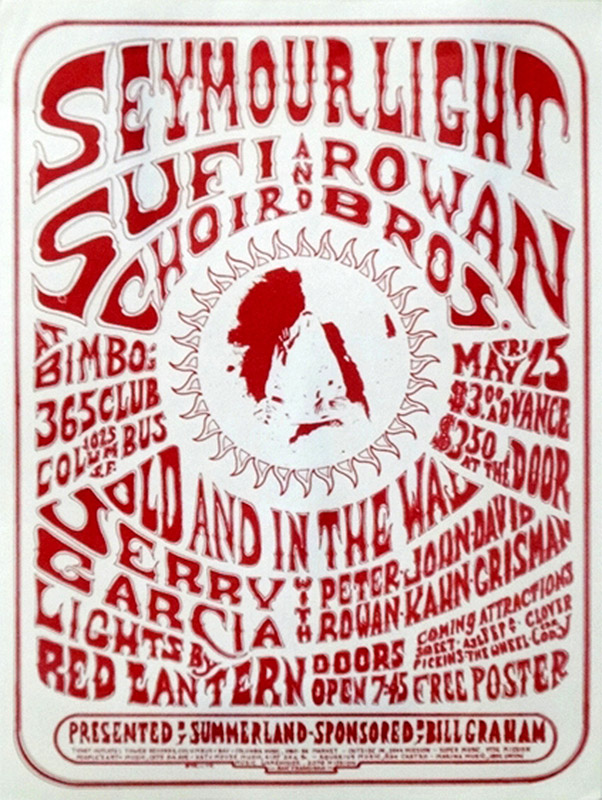 This gig was connected with the "Summerland" project, a work-study program by and for students at San Francisco Opportunity II High School, underwritten by Bill Graham. Richard Greene was not present at this show, per his datebooks. There is eyewitness testimony that John Hartford appeared with Old And In The Way this night, but after that report came in we have come to hold some uncertainty.