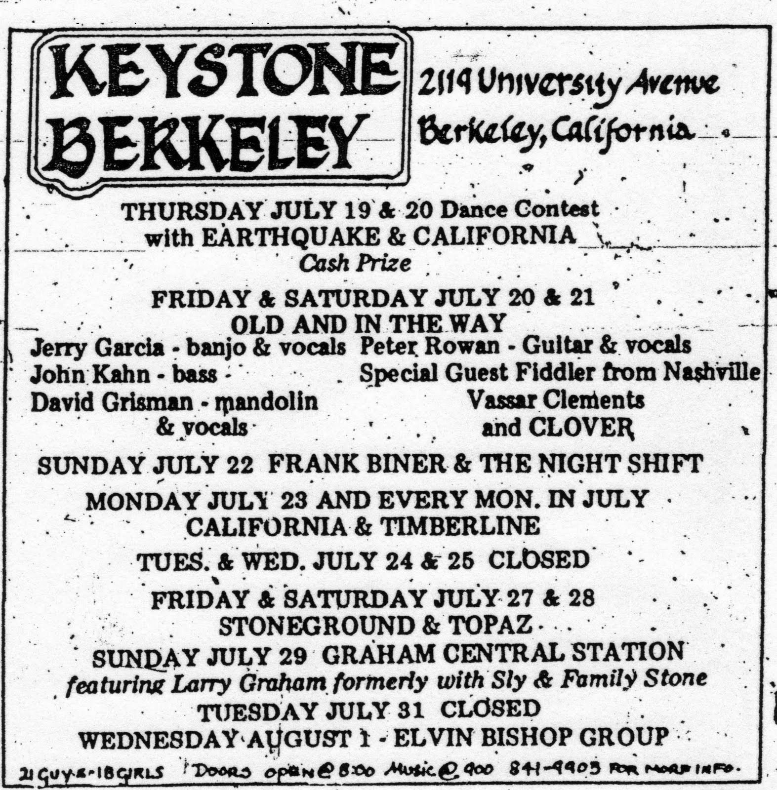 preview: “Jerry Garcia’s Bluegrass Group to Play at Keystone,” Oakland Times, July 17, 1973, p. unk