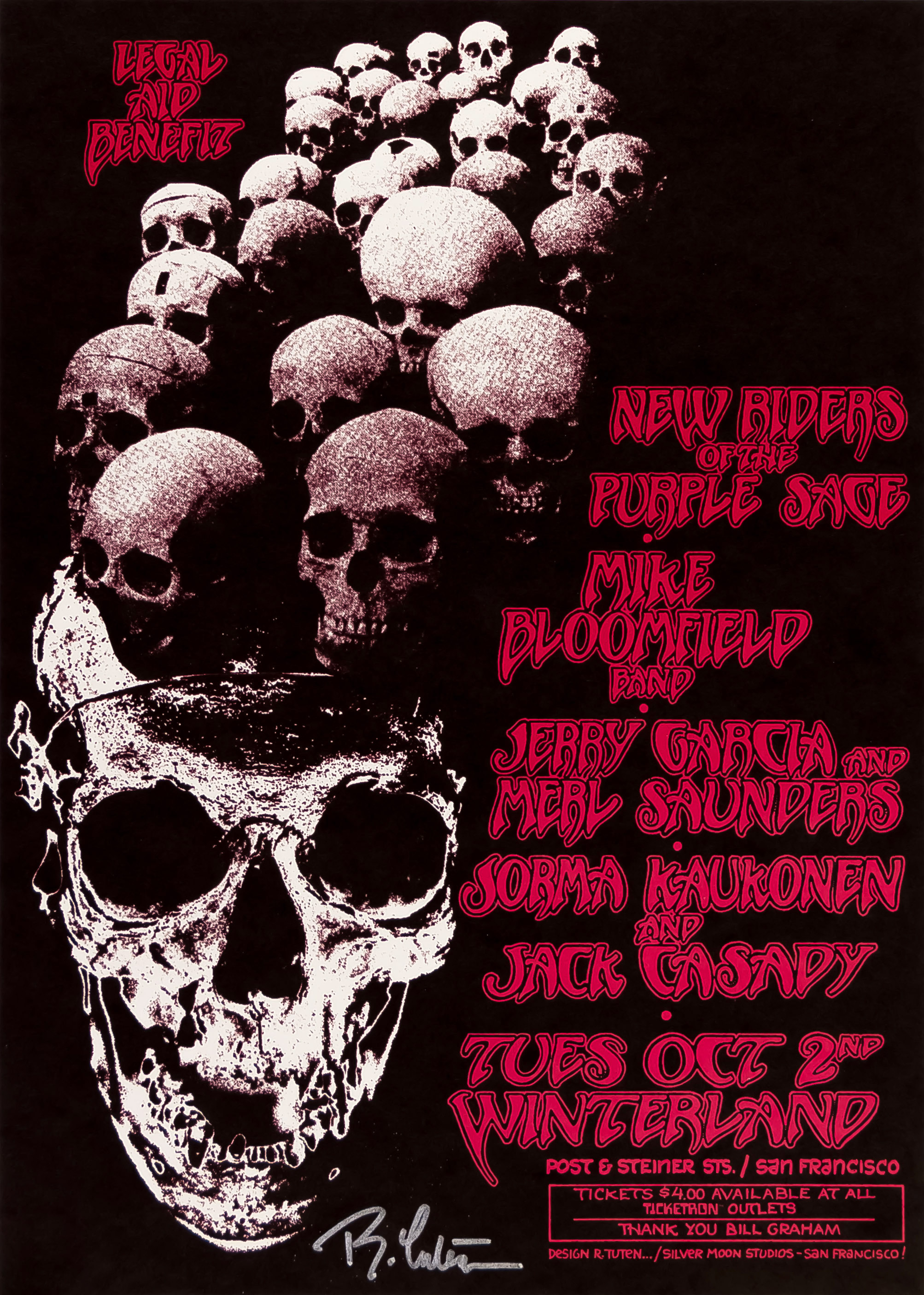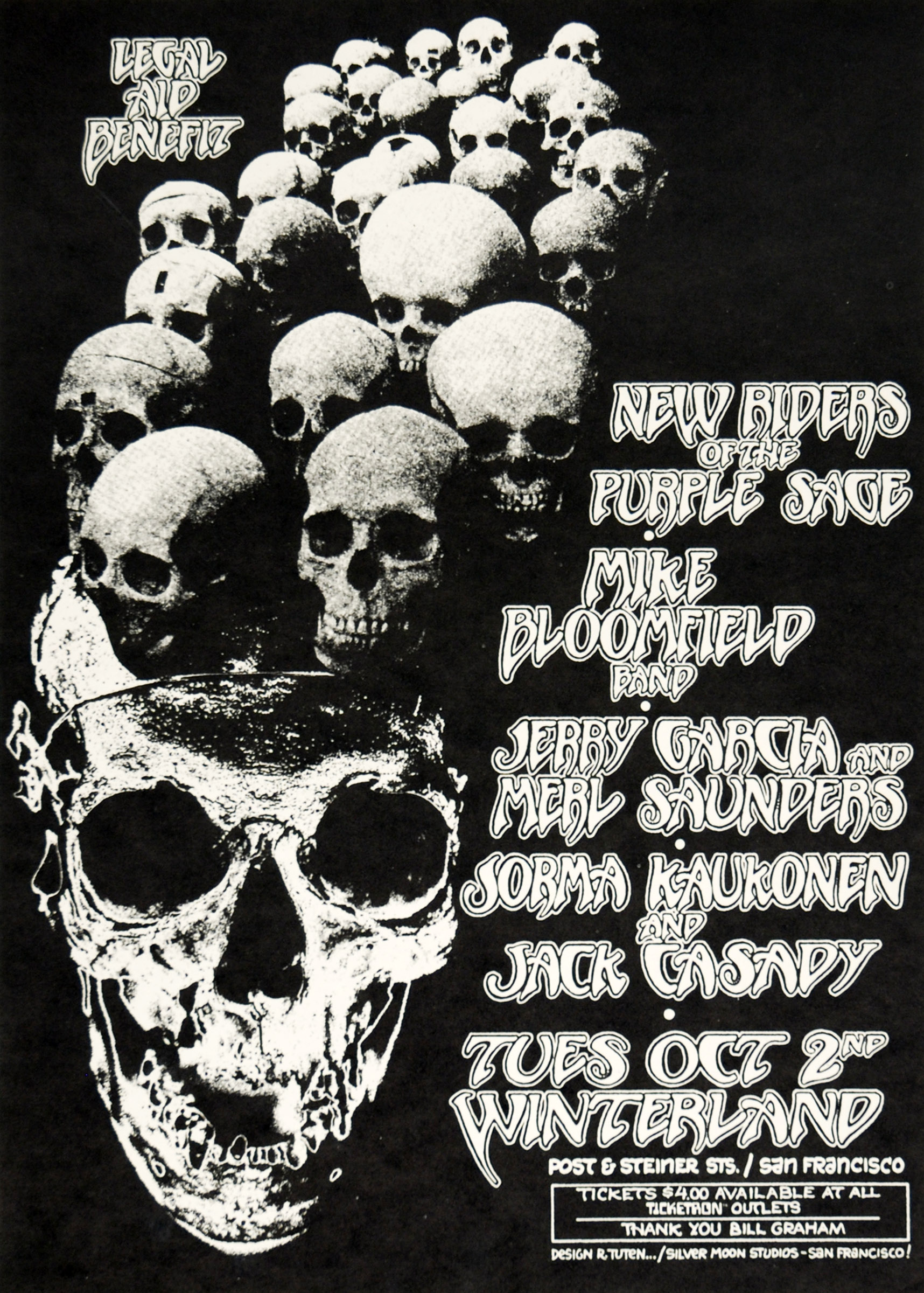 Legal Aid Benefit for Richmond Hell's Angel Badger, which Cutler neglected to specify to Wolfgang (Cutler 2010, 316). Graham: "Was I lied to by omission? Yes. Was I lied to by Mr. Cutler? Yes. For now, the money is going nowhere. Not because it was for an Angel, but because I was lied to. They used me. When I am used, I want to know by whom. What a sad commentary on our supposed 'inside' community. Now, we're in the gutter" (Wasserman 19731005). Sam reports that after finding out, Graham said "Cutler, you motherfucker, I'm going to break your arms and legs" (Cutler 2010, 316). Norm Van Maastricht (2009, 25) tells a funny story of being surrounded by "huge, evil-looking bikers" backstage at this gig, his buddy unwittingly grabbing a beer from their cooler and skee-daddling out of there. JLW 19731012 reported that the $11,051 raised will be paid evenly to the four bands that played, to be distributed as they'd like.