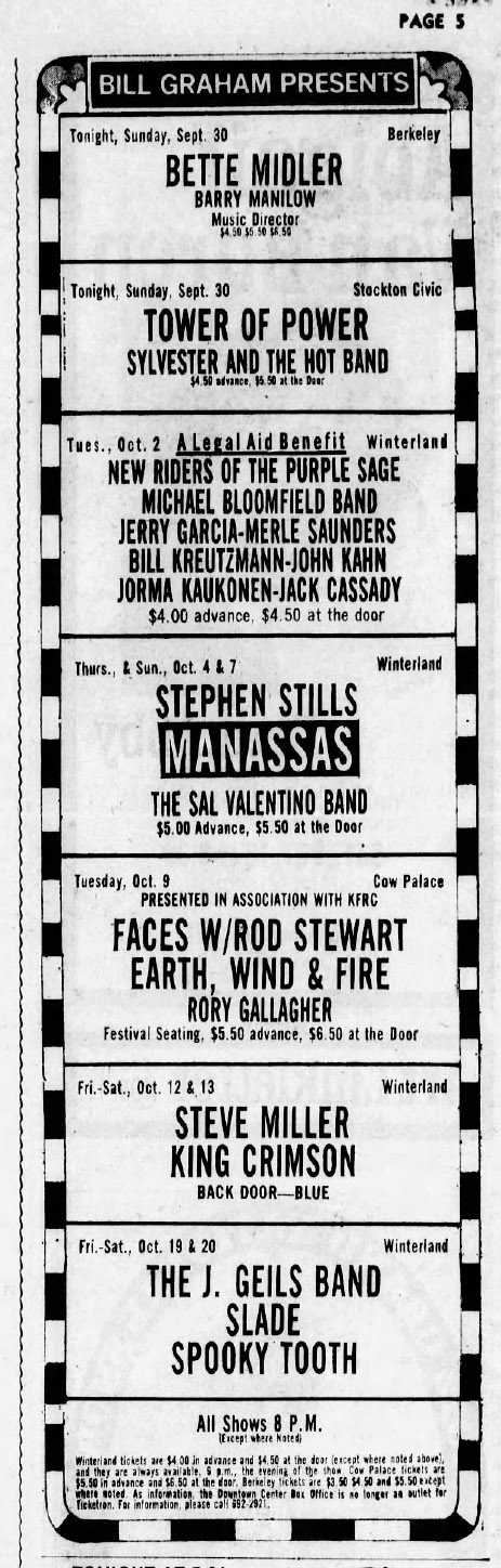 mention: "Rock, Jazz Around the Bay," San Francisco Chronicle, October 1, 1973, p. 44