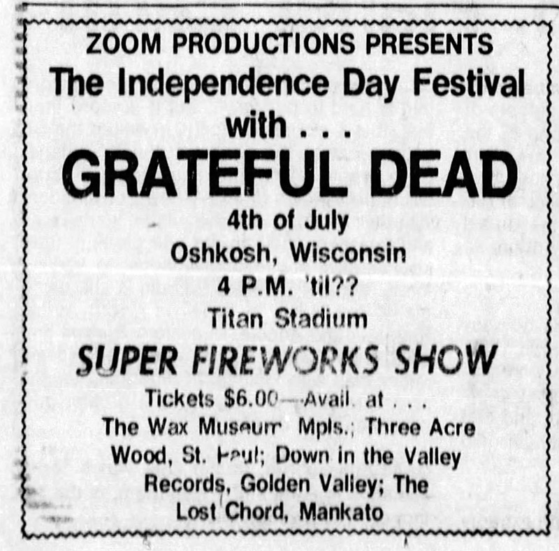 GD: July 4, 1974, Titan Stadium, Oshkosh, WI (CXL)