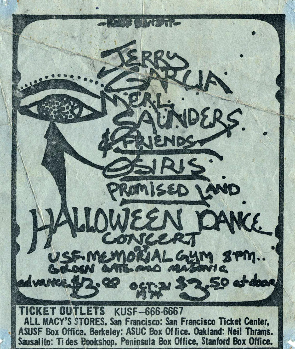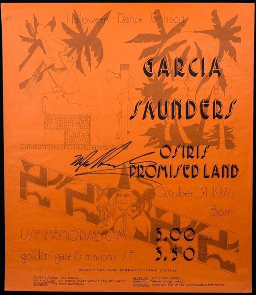 mention: Foghorn, October 18, 1974, p. 10: "KUSF will present Jerry Garcia and Merle [sic] Saunders in a Halloween Dance Concert", noting it is a benefit for the station (also noted at top of the handbill). Images of the pages from the Foghorn available here and here