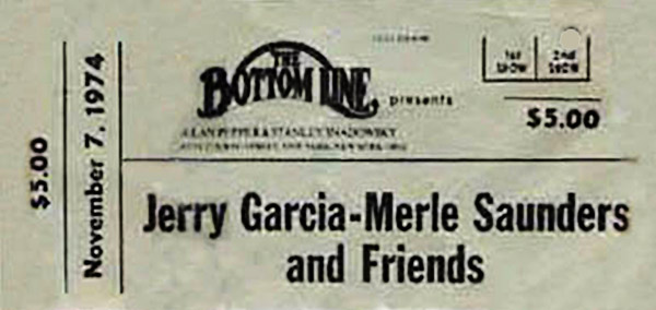 Ticket bills as "Jerry Garcia - Merle [sic] Saunders and Friends"