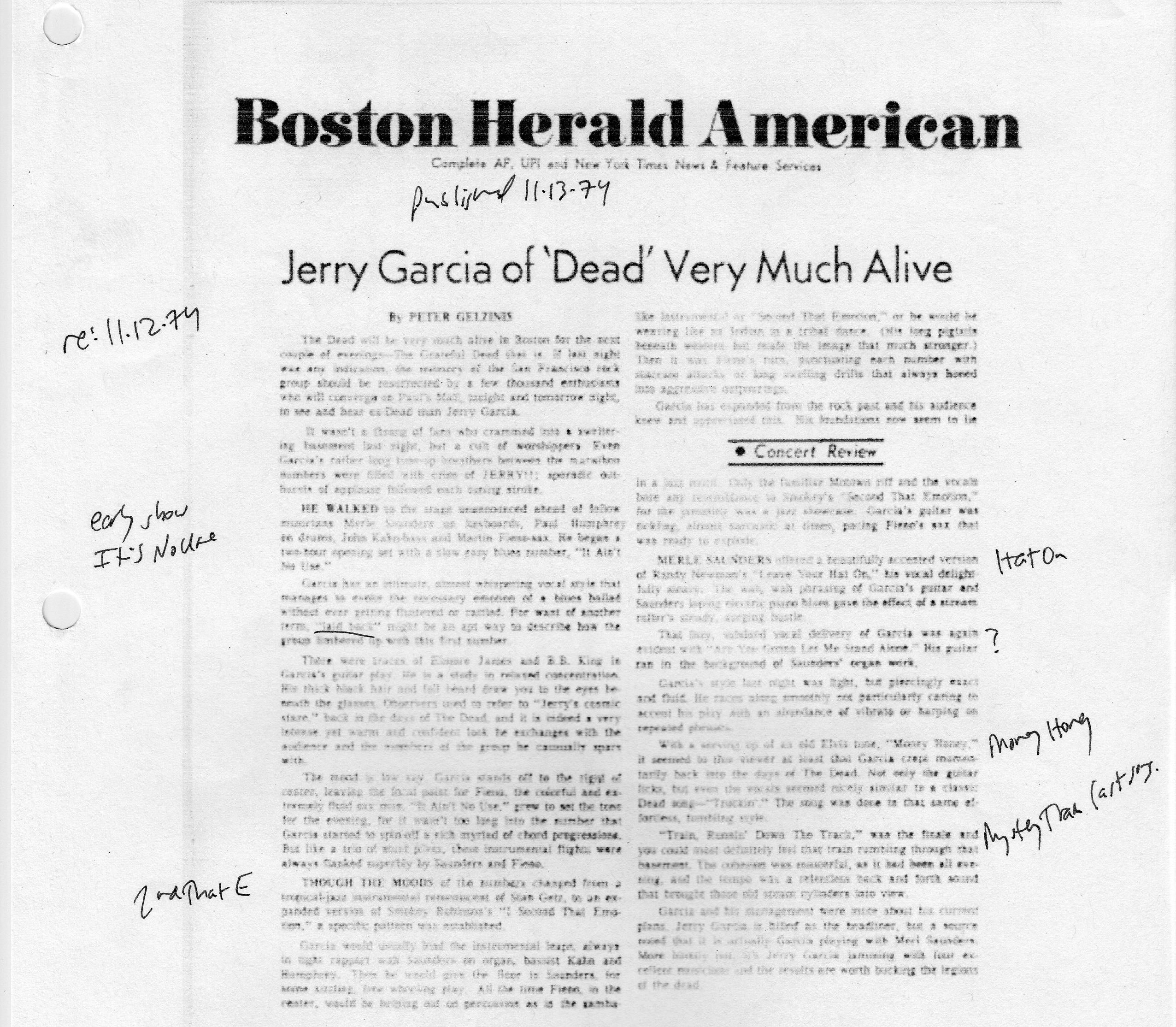 mention: Boston Phoenix, November 12, 1974, sec. 2, p. 17
