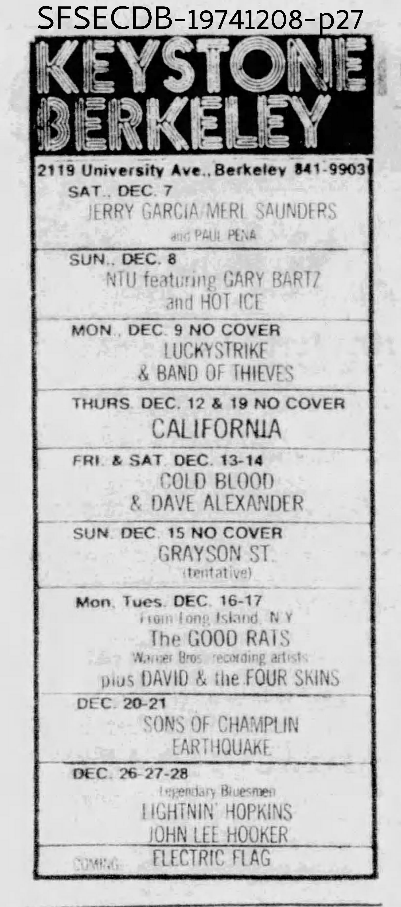 mention: San Francisco Examiner, December 6, 1974, p. 41