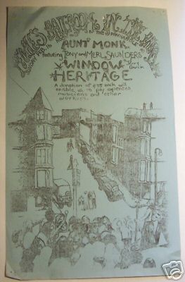 This event was part of the "People's Ballroom in the Park", likely put on by the White Panthers. The location listed on the poster is the Panhandle, and Garcia is among the names given appearing with Aunt Monk. In summer 2024, a photograph of the event emerged, showing Jerry playing the Irwin Eagle. h/t Harold Balzac Mike Clem Mike Weber. Tony Saunders confirmed the drummer is Tommy Donlinger, not Bob Stellar as previously listed.