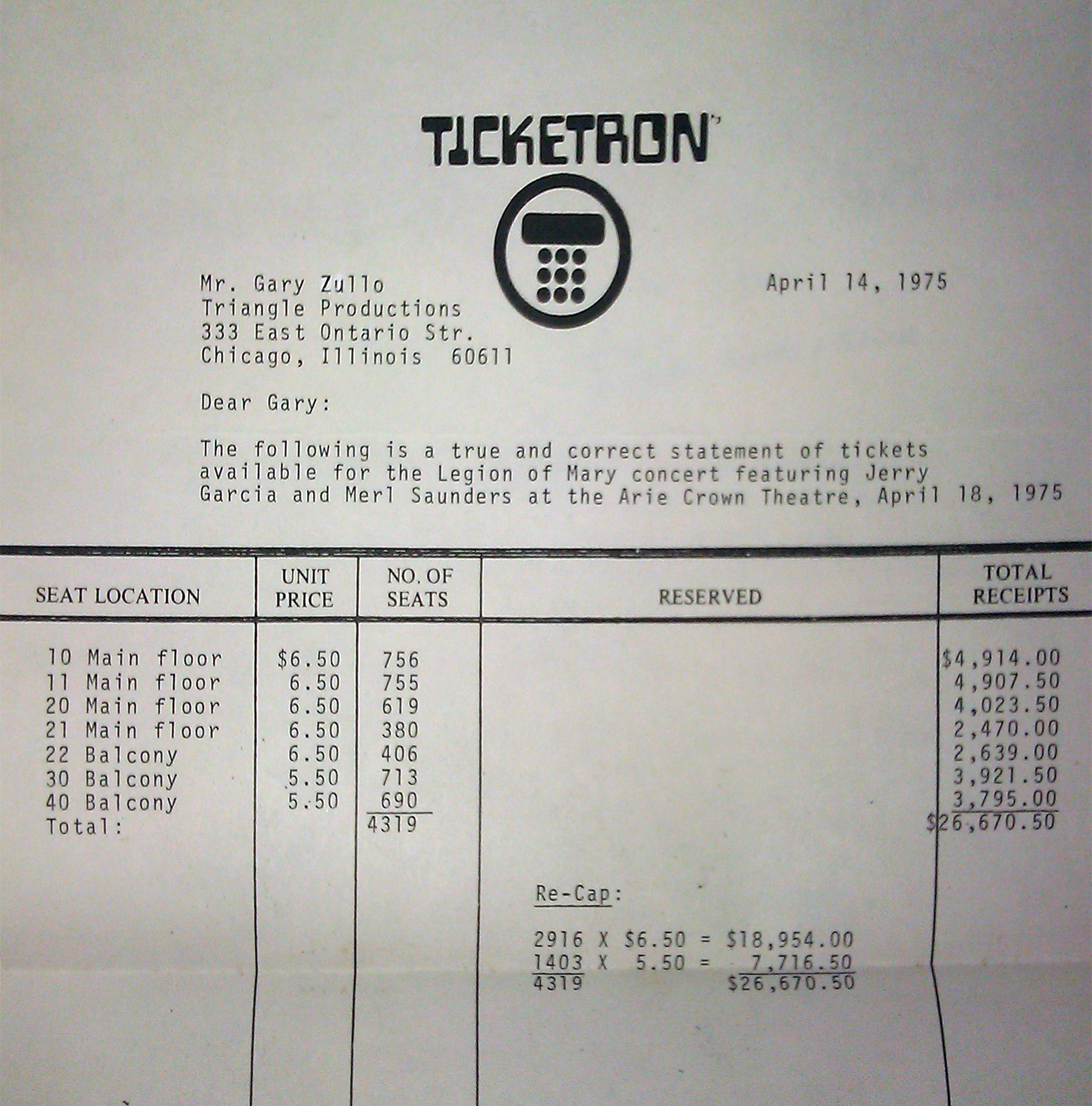 Sue: band $5,000 guarantee plus 60% on gross over $20,000, plus $1,250 for lights and sound. Looks like they were relatively underpaid for this gig.