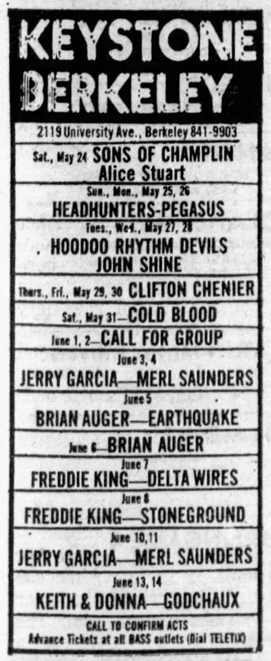 ad: San Francisco Sunday Examiner and Chronicle Datebook, June 8, 1975, p. 29