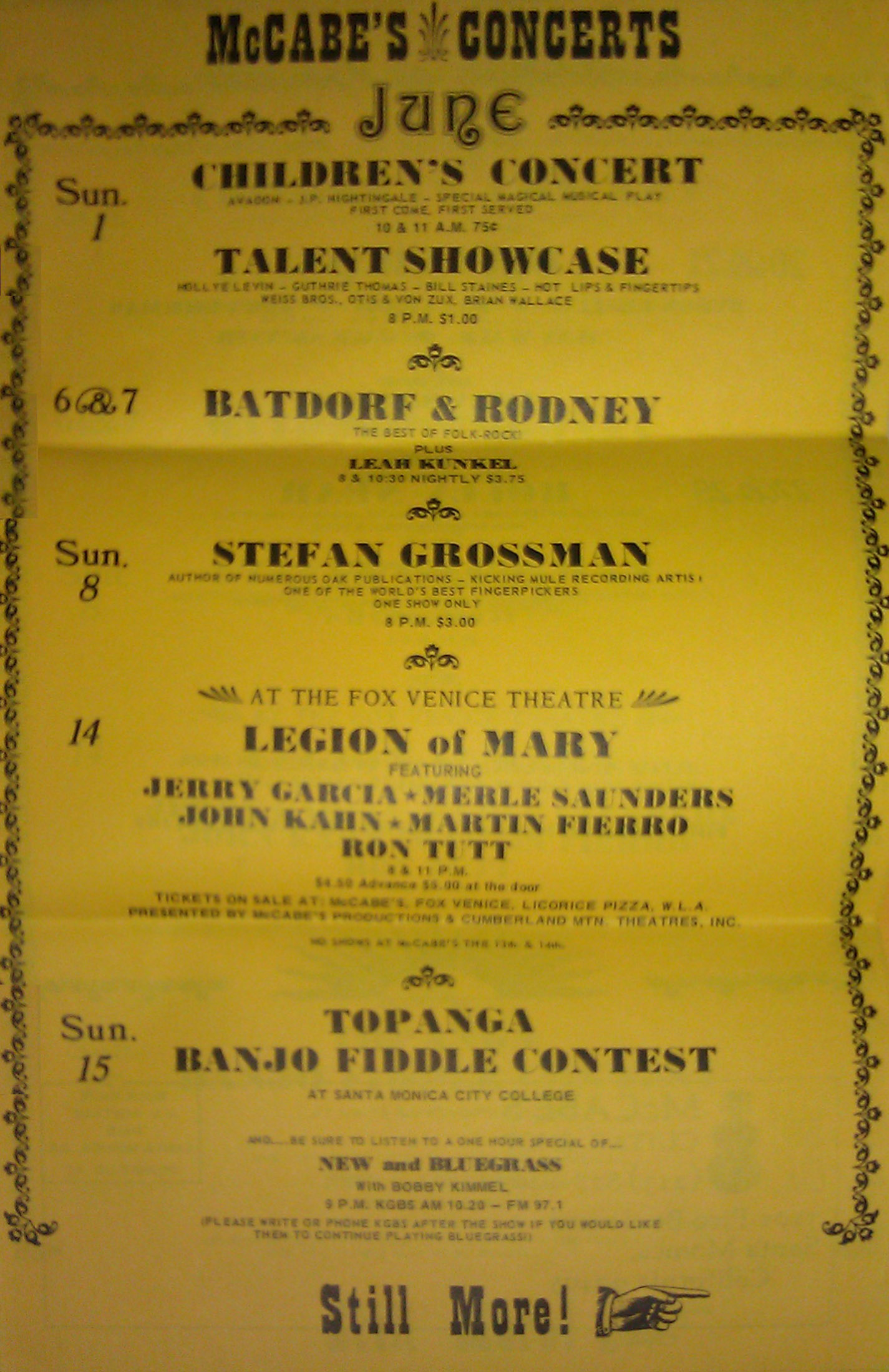 Promoted by McCabe's Concerts. Sue: $3,000 flat guarantee for band for two shows.