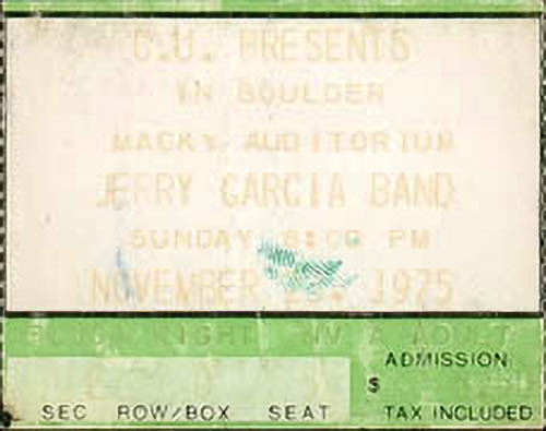 Sue: GP $15k. JGB $7,000 guarantee plus $1500 for lights/sound. Feyline, signed by Cindy Fey. Contract dated 11/4/75. Various campus politics almost scuttled this, as they did on another campus, "the other CU", a month earlier (10/27/75 at Cornell)