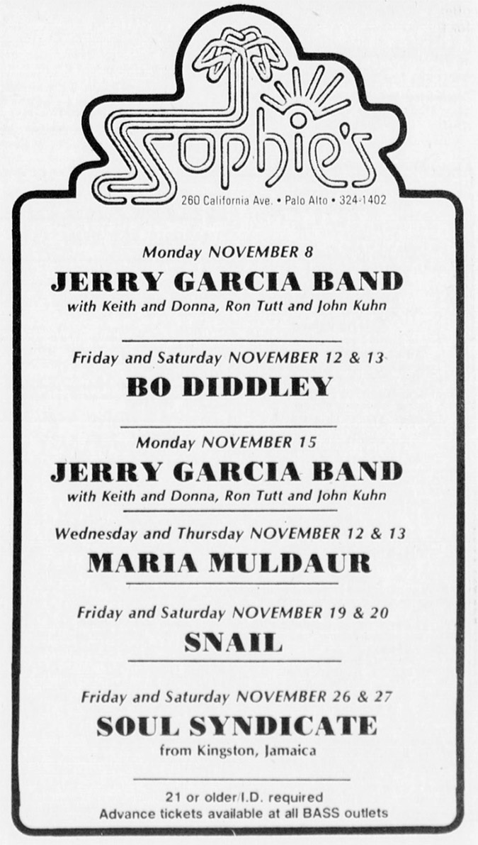 Sue: $750 guarantee, but the boxoffice accounting suggests band got 80%, and walked away with $1,250, plus $450 sound. Contracts originally for two nights, presumably also 9th, but 9th crossed out. We originally thought this might be the start of the Freddie era (shows on Monday night) in Palo Alto, but the contract is signed by Ken Rominger (with address at La Bodega in Campbell). Boxoffice is headed "Bodega Production". 390 tickets sold - not sure if that's a sellout, but might have been close? How many did this room hold?
