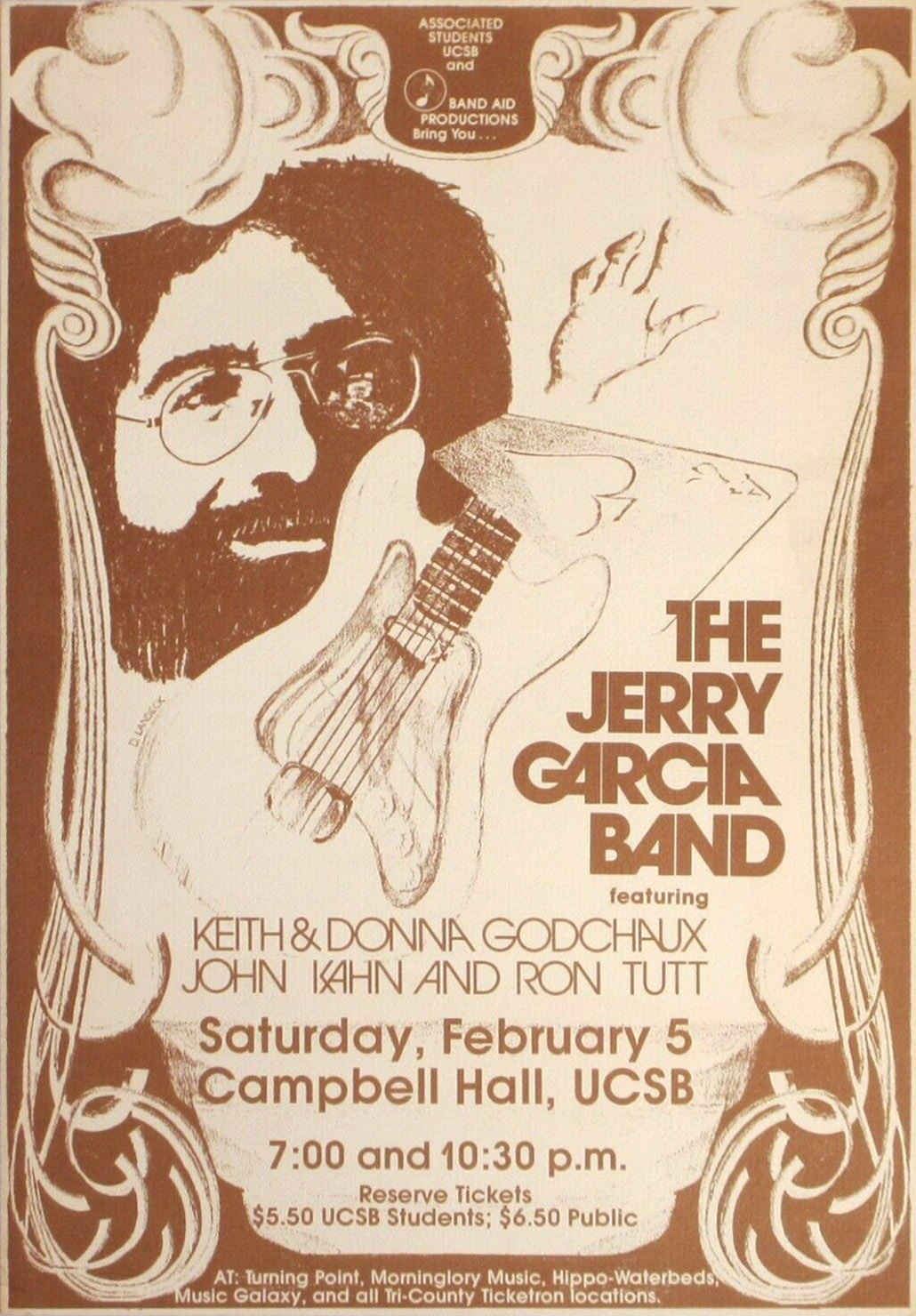 Proceeds to go to Red Wind Foundation. Grandfather Semu Huate was founder of benficiary, still directing at this time: "Red Wind Foundation and inter-tribal and inter-racial community on 160 acres near San Luis Obispo California, a non-profit organization dedicated to preserving the cultural and religious heritage of the Chumash and other American Indians." The ad makes no mention of a benefit, it's your standard campus event ad. The Mayem exante says the show was only approved on 1/19, and does mention the Indian angle. The picture caption from the day of the show identifies "Jerry Garcia of the Grateful Dead" - I had seen this on an earlier SB show and thought it odd, and I still think it odd here.