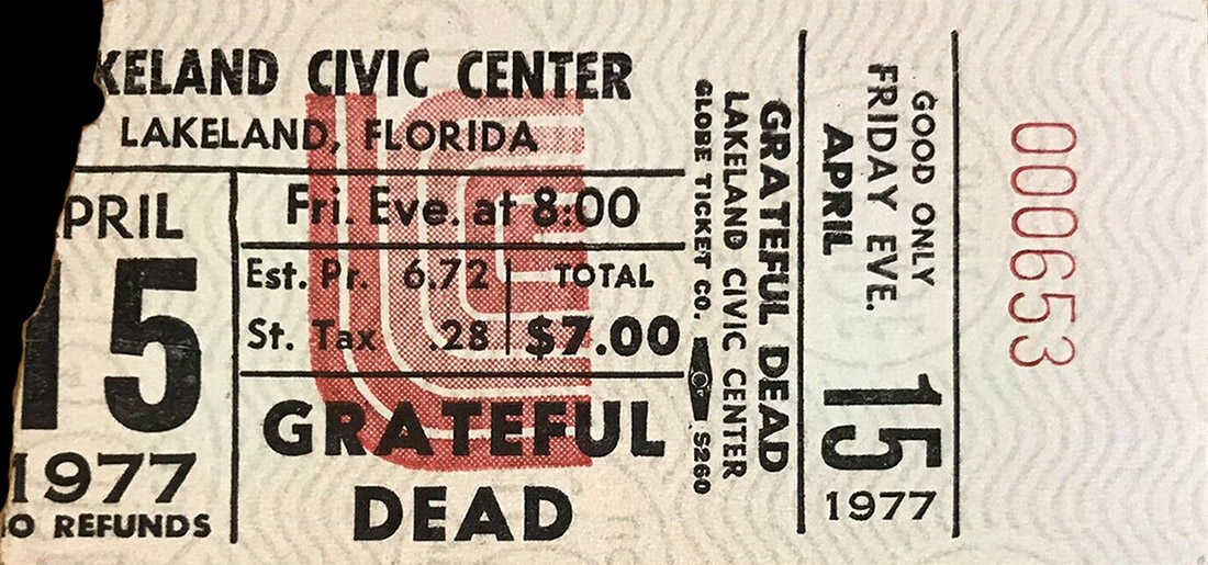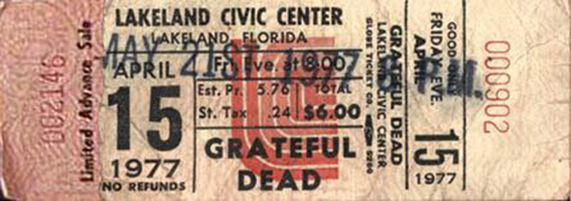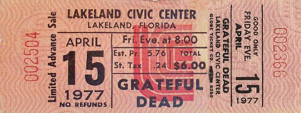 cxl: "Grateful Dead Concert Postponed," Lakeland Ledger, April 8, 1977, p. 8C (accessed via Google News);