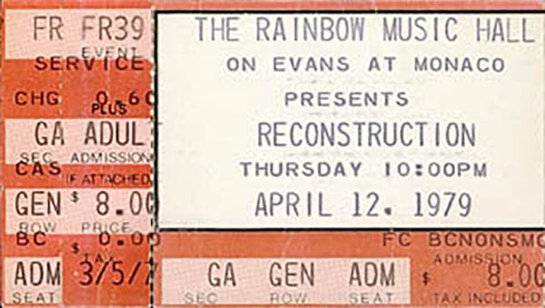 • JGMF: Reconstruction at the Rainbow. Note that Reconstruction did NOT play the Rainbow on 4/13/79, despite well-provenanced tapes that are so labeled.