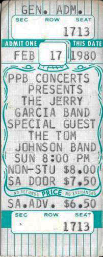 Rachel Sweet billed to open, but "announced the cancellation of her tour last week, much to the delight of Garcia fans" (Fausner). A ticket from ebay shows "Special Guest The Tom Johnson Band". Instead, Robert Hunter canceled a gig at Rainbow Music Hall in Denver, so he could open for JGB, joining the tour on this night.