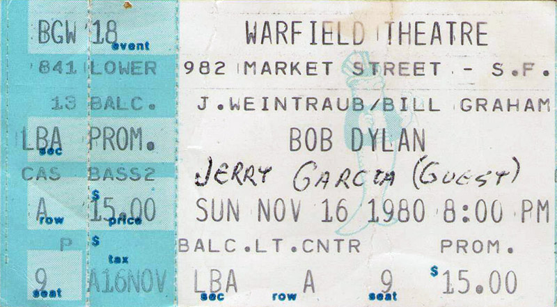 JG went to play as an act of solidarity with Dylan, because the Christian shows weren't selling very well. Unclear if it was JG or Bill Graham's idea. Nicki recounts that Bill G offered it, JG wanted to know if it was Bill or Bob who was asking, Bill said "Bob", it wasn't true. Dylan gave JG kind of a nothing vibe (all that from Greenfield 1996, 240-241).