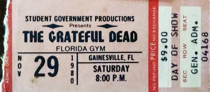[1] Other One tease at end [2] with Drummers [3] before Bobby gives condolences to the crowd, "sorry about the game", probably in reference to the U of Florida football team's 31-7 loss to their rival, the U of Miami.