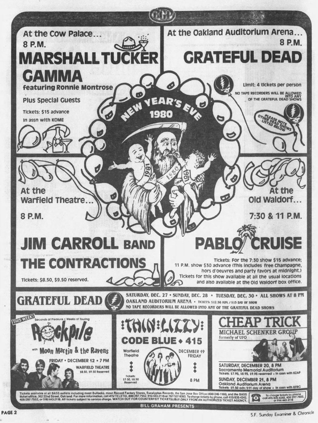 [1] Reportedly this was an acoustic soundcheck [2] Final performance (by GD) next performance on 1981-10-11 by Jerry Garcia and Bob Weir [3] Final performance of the song with all members of the Grateful Dead. It was performed again on 10/11/81 with some members of the band (Jerry and Bob). [4] With Matthew Kelly on harmonica [5] With John Cipollina on guitar [6] Last known performance (by GD) 1979-12-31 (87 events ago)