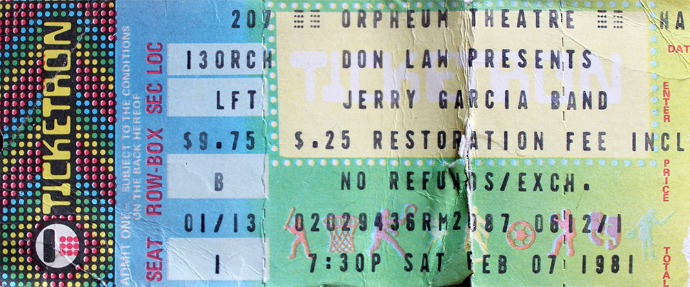 JERRY GARCIA BAND 2-7-1981 ORPHEUM THEATER BOSTON, MA EARLY SHOW AND LATE SHOW