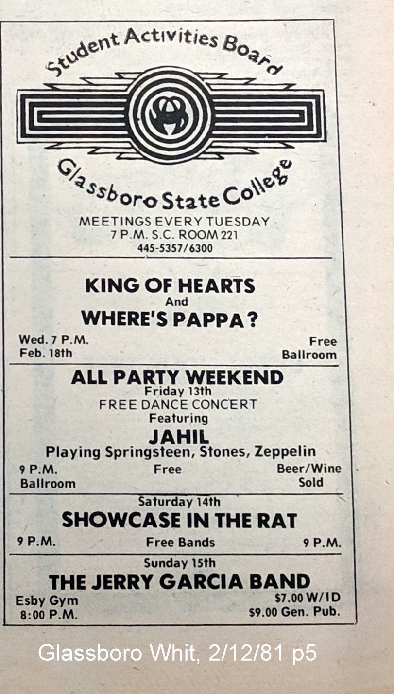 DOWN in South Jersey? JGB at Glassboro State College, February 15, 1981