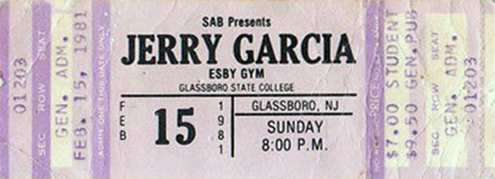 JERRY GARCIA BAND 2-15-1981 GLASSBORO COLLEGE GLASSBORO, NJ